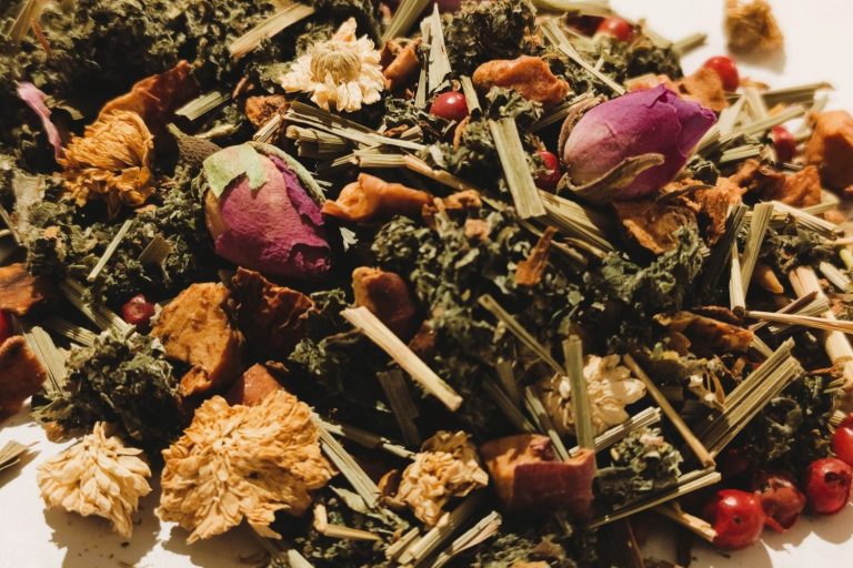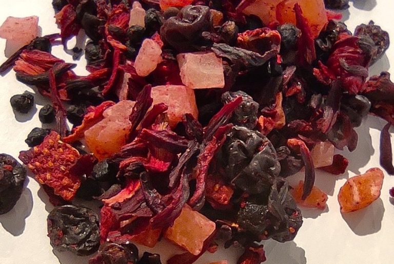 Hier weißer und grüner Tee in einer feinen Mischung mit Himbeeren