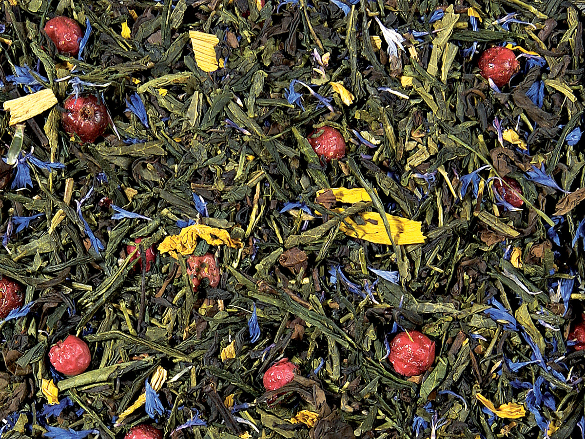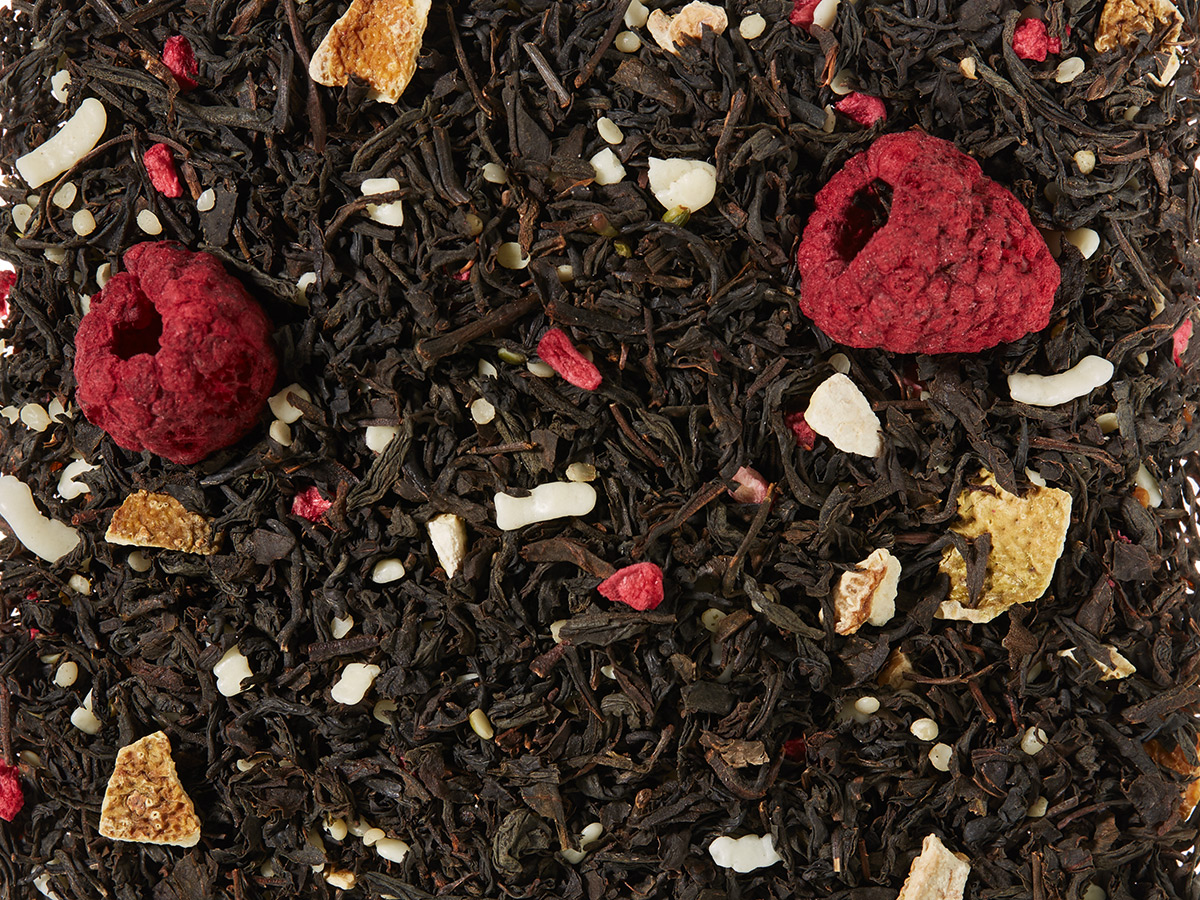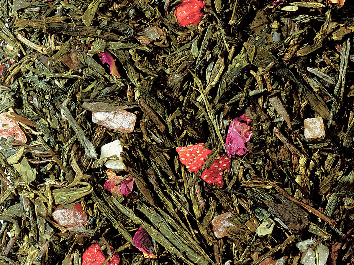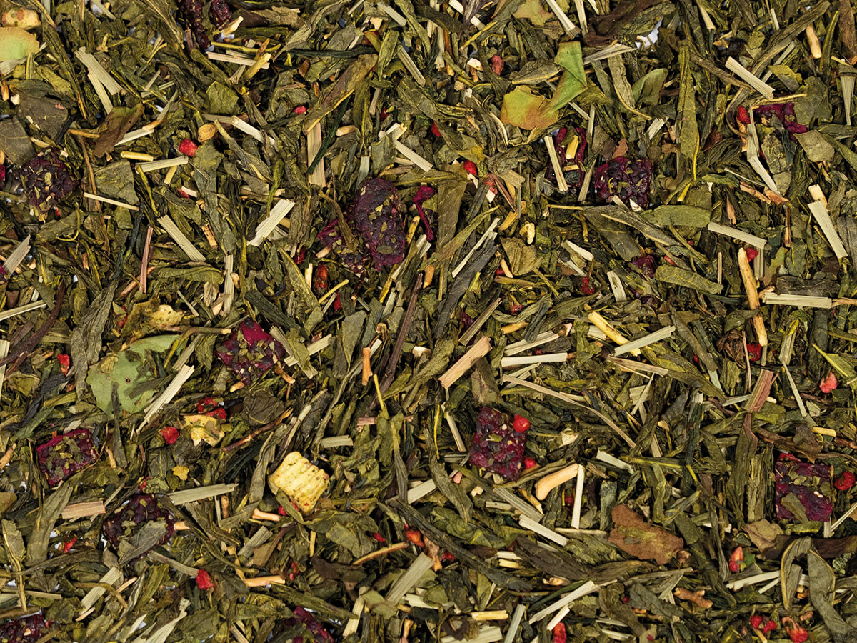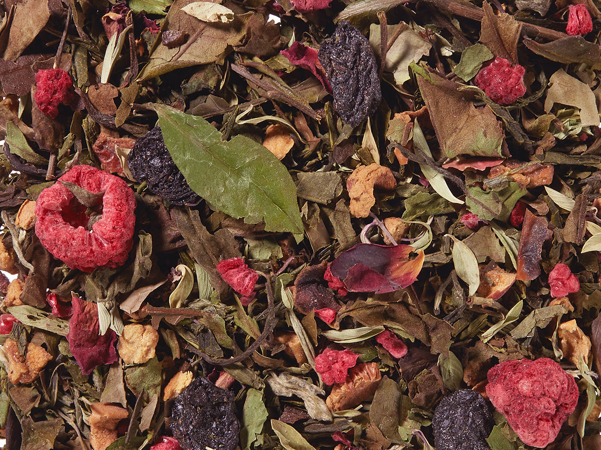 Hier weißer und grüner Tee in einer feinen Mischung mit Himbeeren