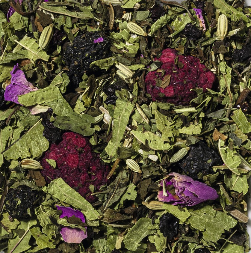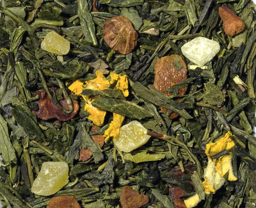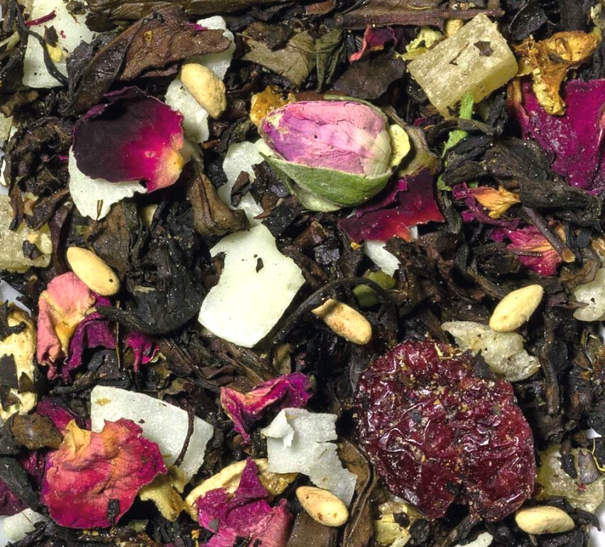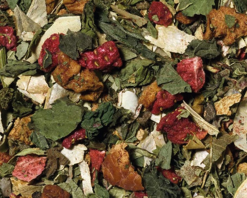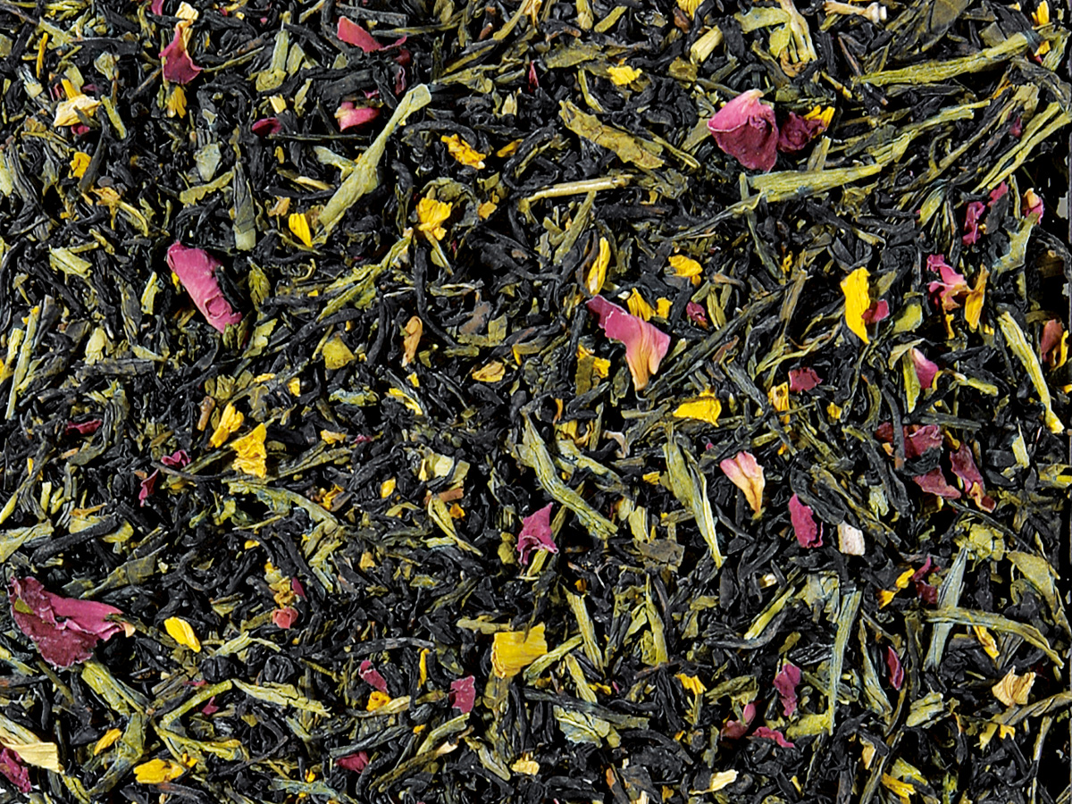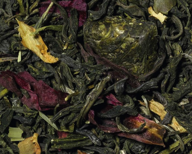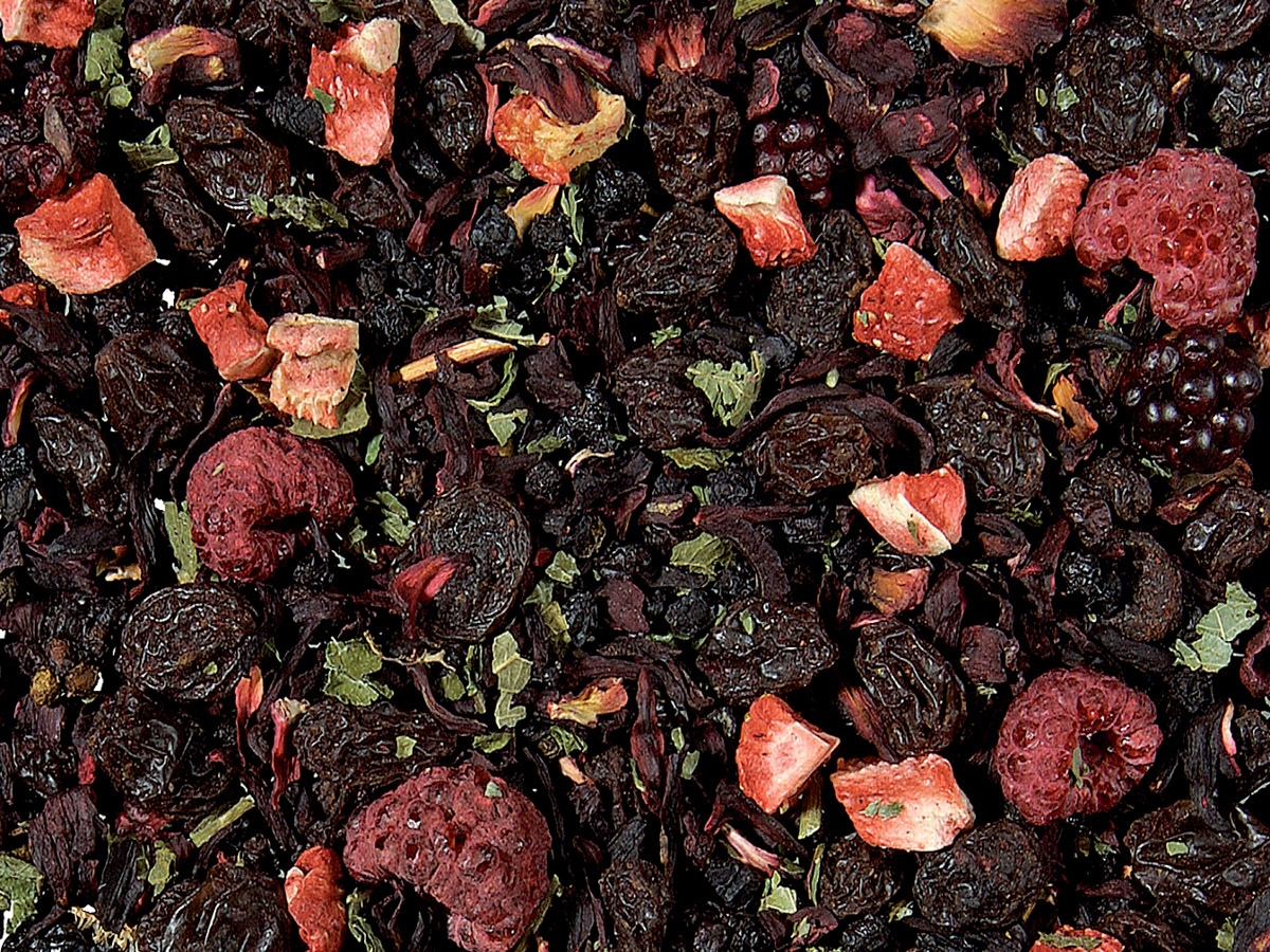 Hier weißer und grüner Tee in einer feinen Mischung mit Himbeeren