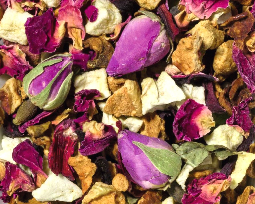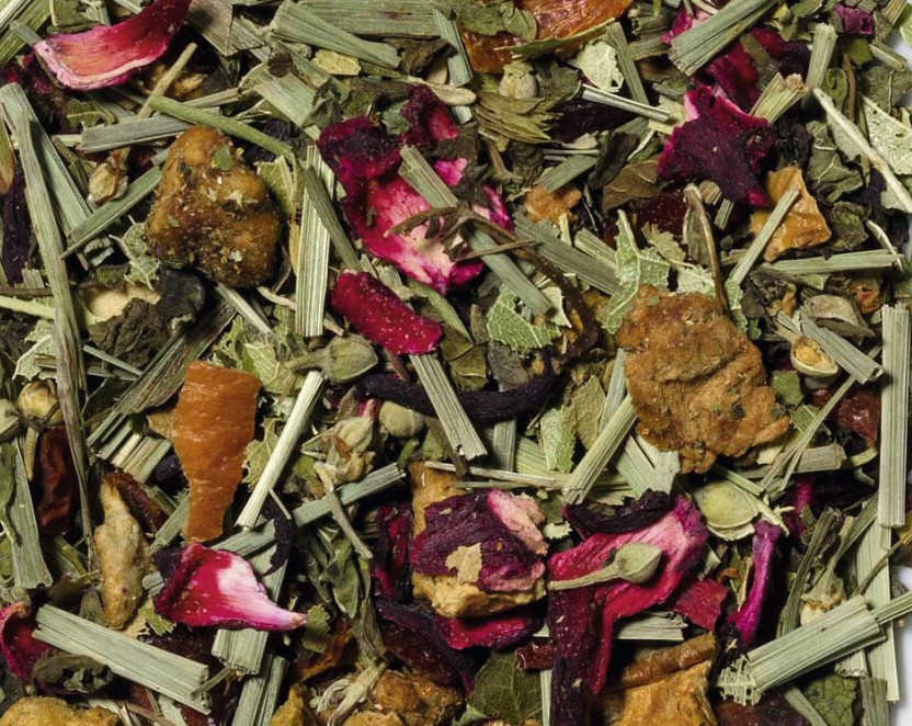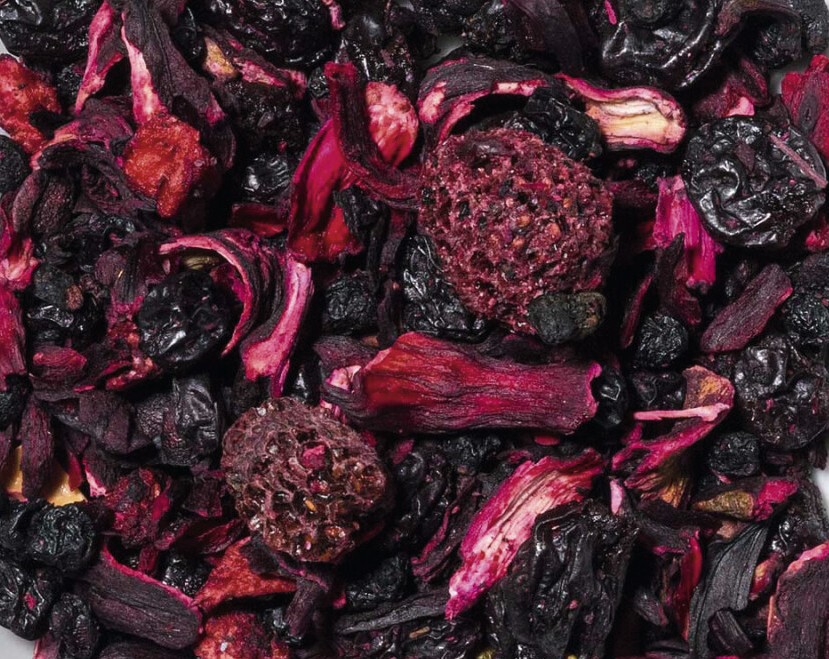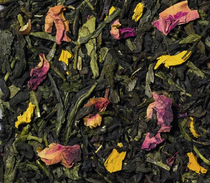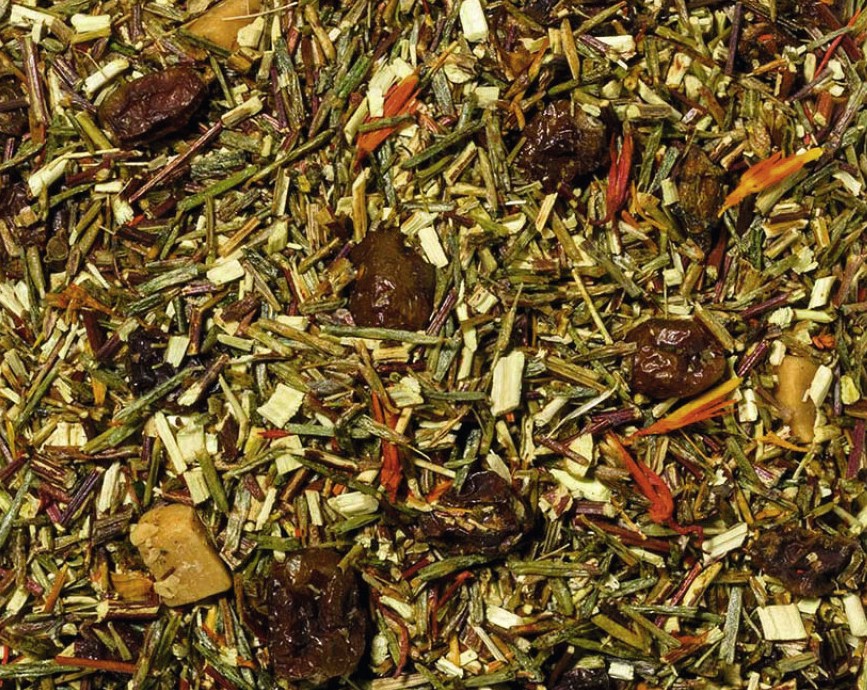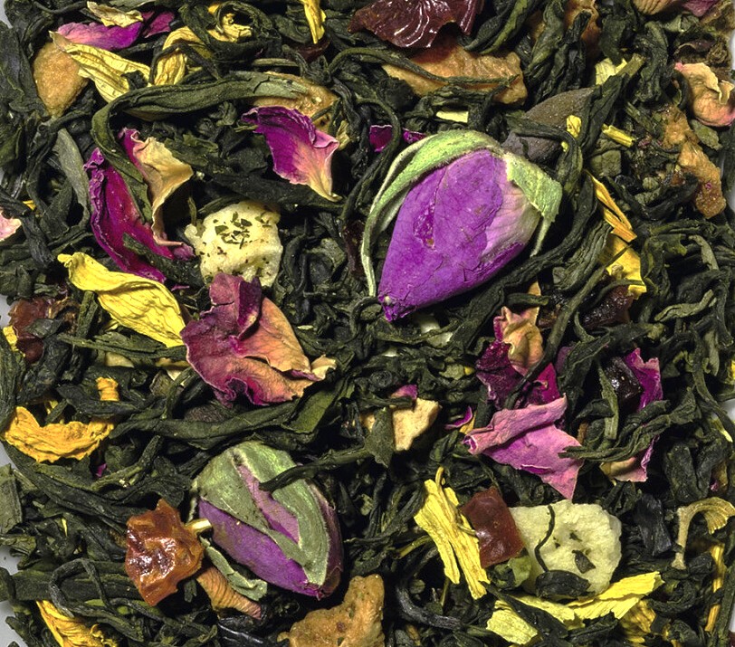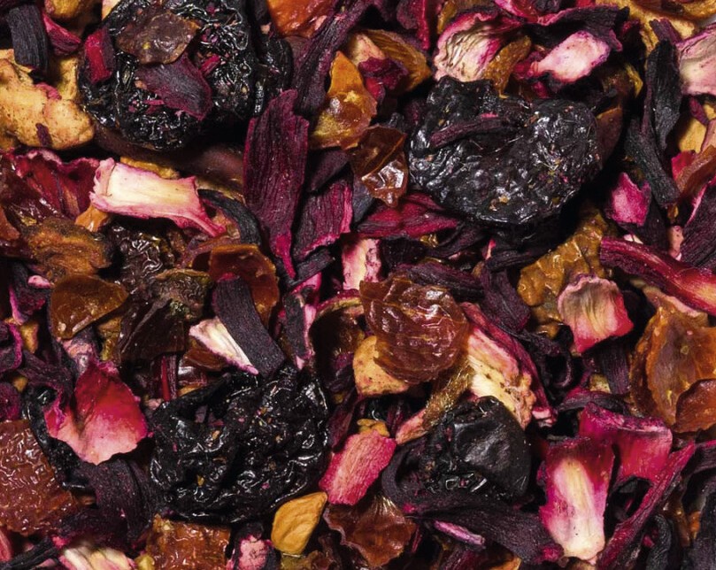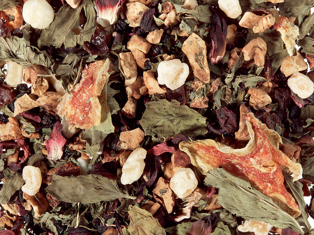 Hier weißer und grüner Tee in einer feinen Mischung mit Himbeeren